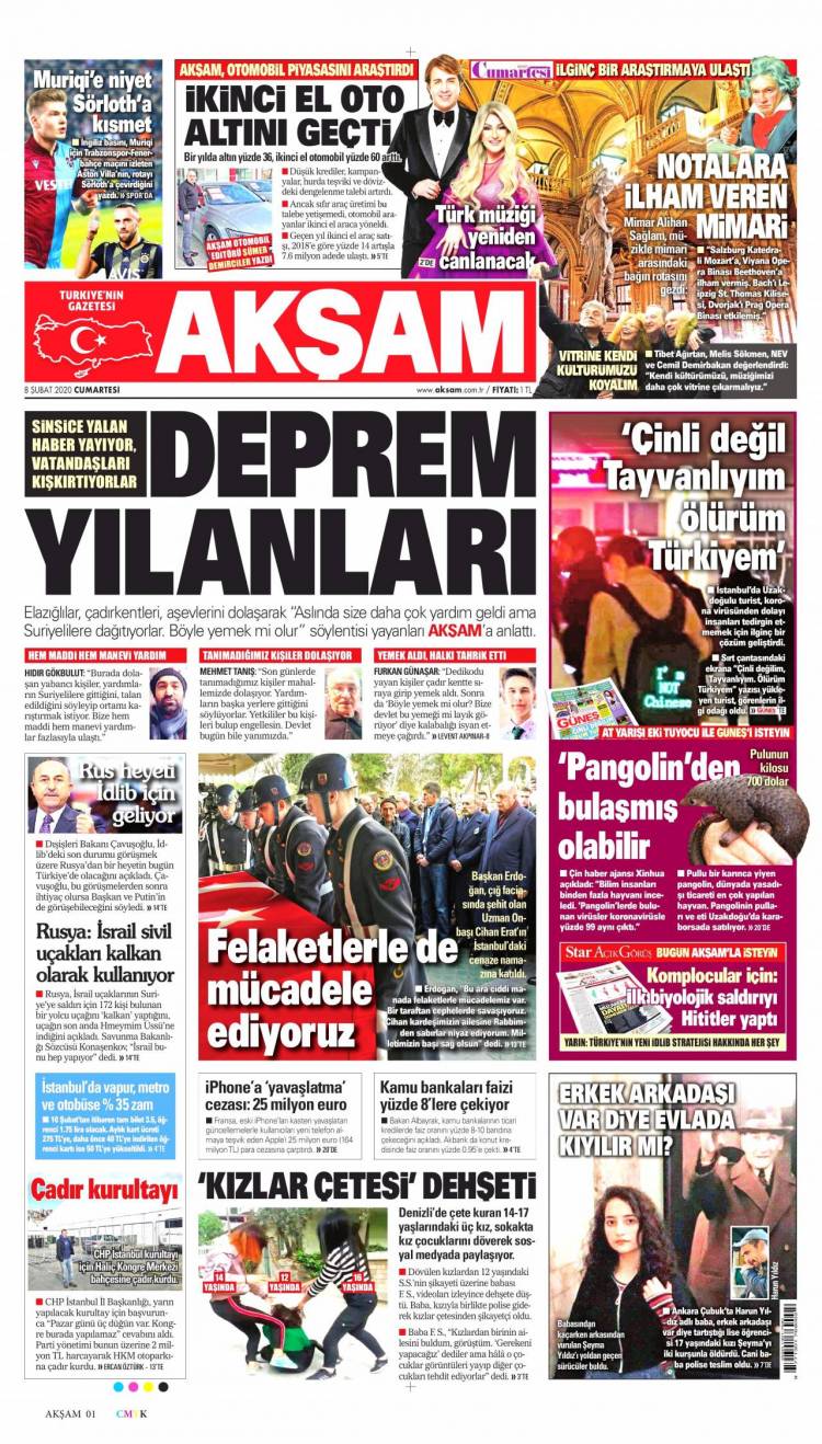 * Günün Ulusal Gazete Manşetleri – 08 02 2020Ulusal Gazetelerin 1. sayfaları Haber Merkezi Yayınlanma: 08.02.2020 - 11:50 Son güncellenme: 28.01.2025 - 23:42 Akşam