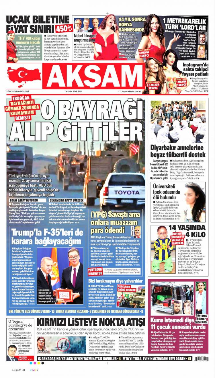 * Günün Ulusal Gazete Manşetleri – 08 10 2019Ulusal Gazetelerin 1. sayfaları Haber Merkezi Yayınlanma: 08.10.2019 - 11:50 Son güncellenme: 29.01.2025 - 01:02 Akşam