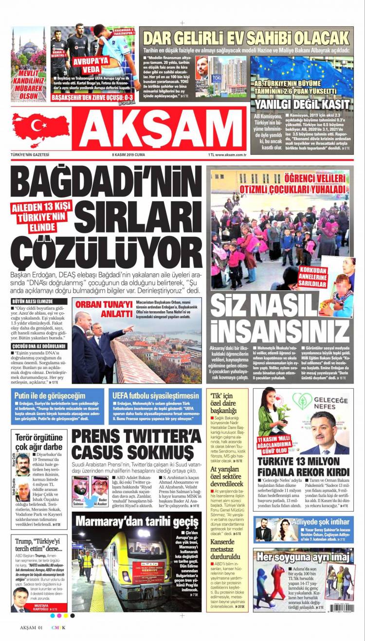 * Günün Ulusal Gazete Manşetleri – 08 11 2019Ulusal Gazetelerin 1. sayfaları Haber Merkezi Yayınlanma: 08.11.2019 - 11:50 Son güncellenme: 29.01.2025 - 00:36 Akşam