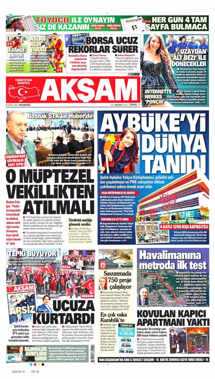 * Günün Ulusal Gazete Manşetleri – 08 11 2021Ulusal Gazetelerin 1. sayfaları Haber Merkezi Yayınlanma: 08.11.2021 - 11:50 Son güncellenme: 28.01.2025 - 14:29 Akşam