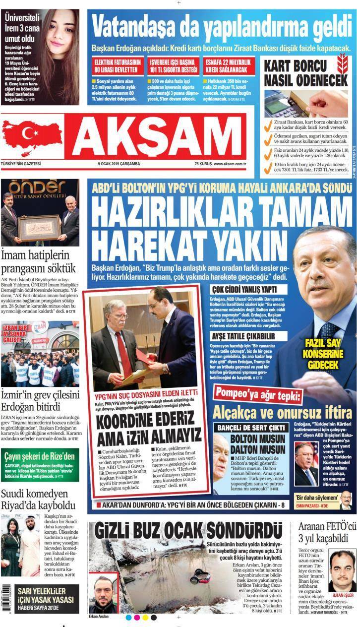 * Günün Ulusal Gazete Manşetleri – 09 01 2019Ulusal Gazetelerin 1. sayfaları Haber Merkezi Yayınlanma: 09.01.2019 - 11:50 Son güncellenme: 29.01.2025 - 05:05 Akşam