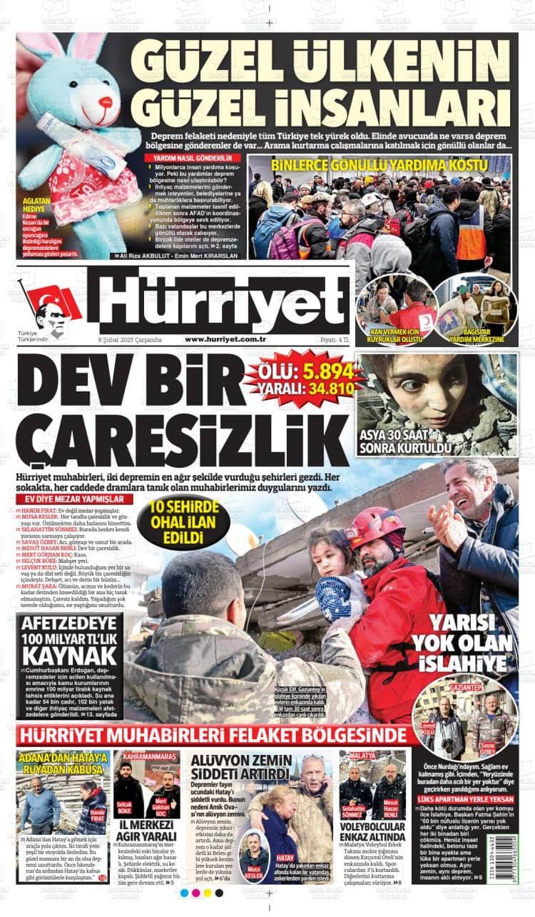 * Günün Ulusal Gazete Manşetleri – 09 02 2023Ulusal Gazetelerin 1. sayfaları Haber Merkezi Yayınlanma: 09.02.2023 - 11:50 Son güncellenme: 28.01.2025 - 08:14 Hürriyet