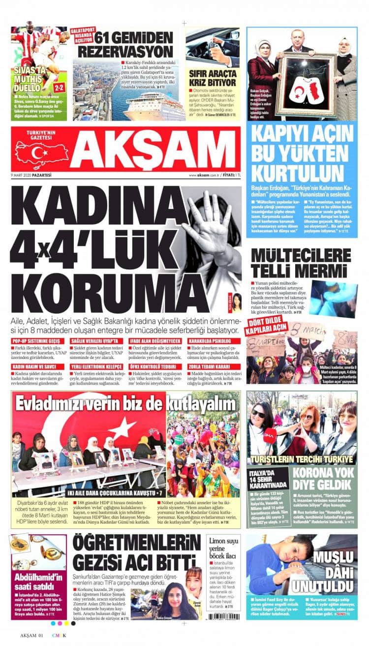 * Günün Ulusal Gazete Manşetleri – 09 03 2020Ulusal Gazetelerin 1. sayfaları Haber Merkezi Yayınlanma: 09.03.2020 - 11:50 Son güncellenme: 28.01.2025 - 23:17 Akşam