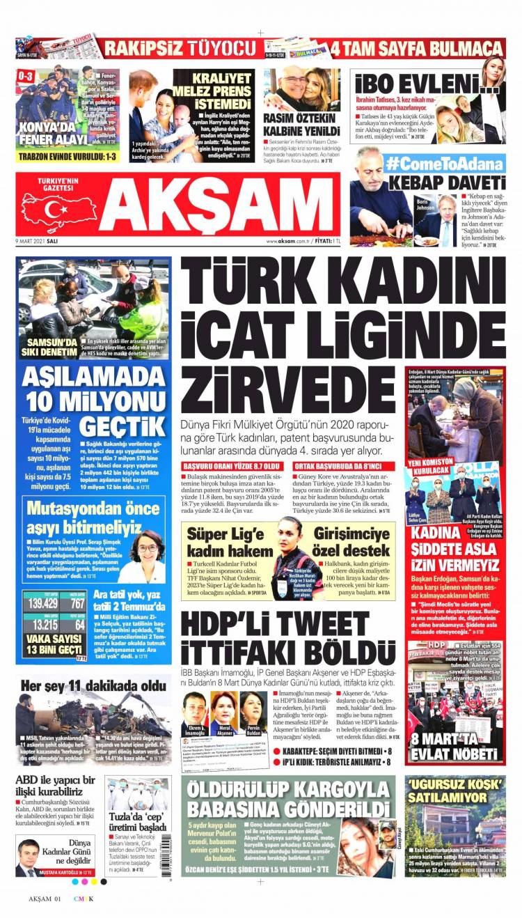 * Günün Ulusal Gazete Manşetleri – 09 03 2021Ulusal Gazetelerin 1. sayfaları Haber Merkezi Yayınlanma: 09.03.2021 - 11:50 Son güncellenme: 28.01.2025 - 17:54 Akşam