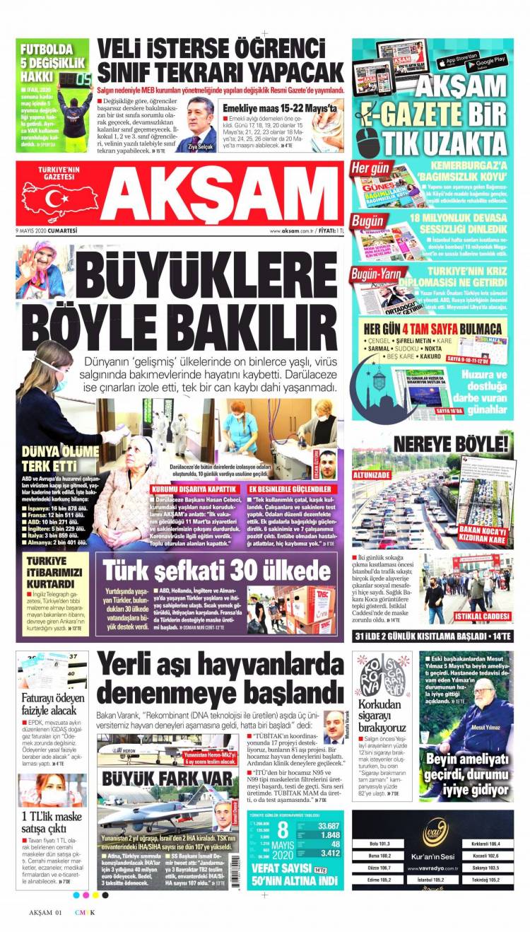 * Günün Ulusal Gazete Manşetleri – 09 05 2020Ulusal Gazetelerin 1. sayfaları Haber Merkezi Yayınlanma: 09.05.2020 - 11:50 Son güncellenme: 28.01.2025 - 22:26 Akşam