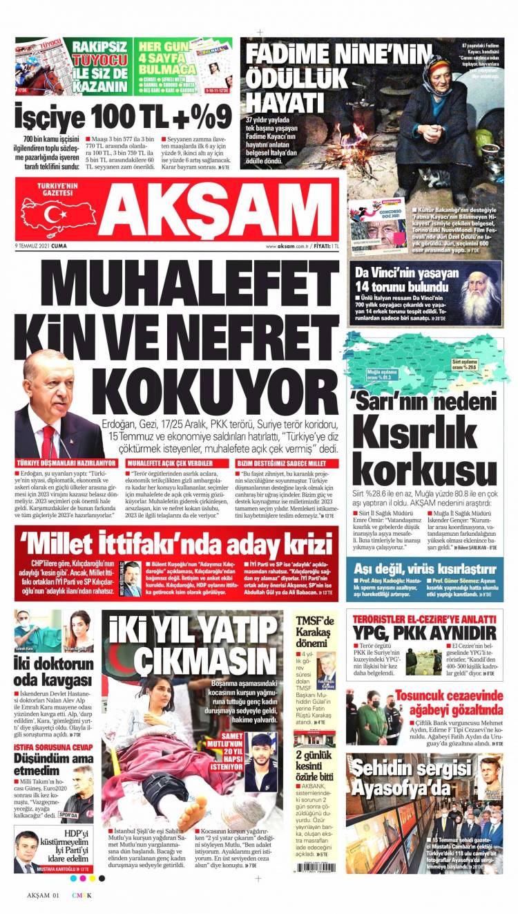 * Günün Ulusal Gazete Manşetleri – 09 07 2021Ulusal Gazetelerin 1. sayfaları Haber Merkezi Yayınlanma: 09.07.2021 - 11:50 Son güncellenme: 28.01.2025 - 16:12 Akşam