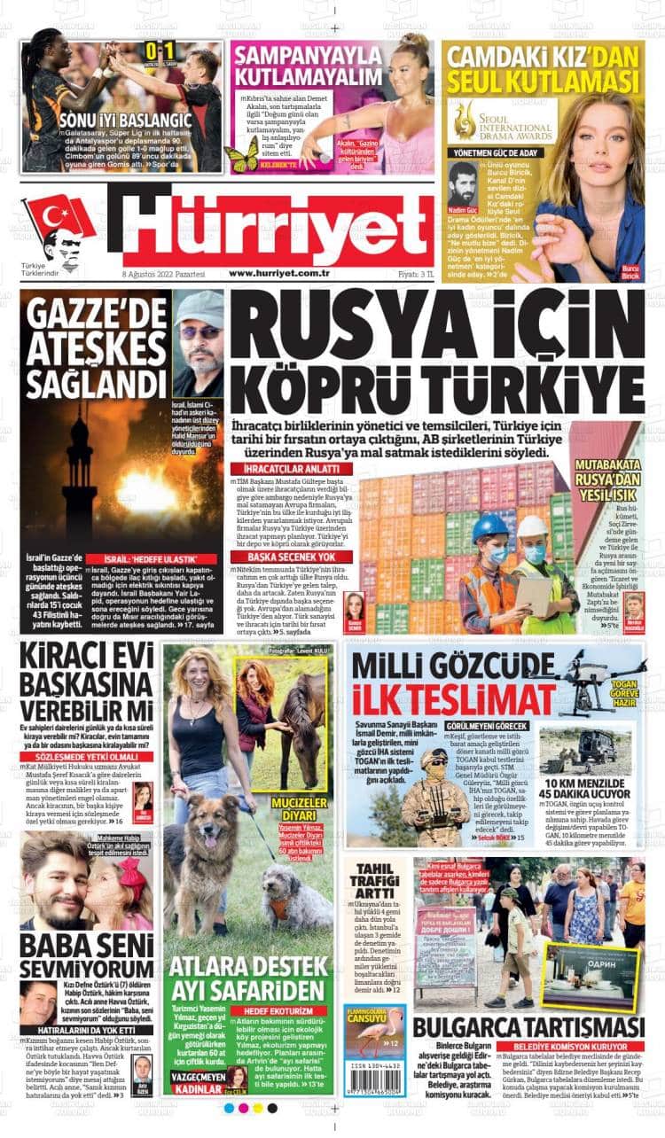 * Günün Ulusal Gazete Manşetleri – 09 08 2022Ulusal Gazetelerin 1. sayfaları Haber Merkezi Yayınlanma: 09.08.2022 - 11:50 Son güncellenme: 28.01.2025 - 10:38 Hürriyet