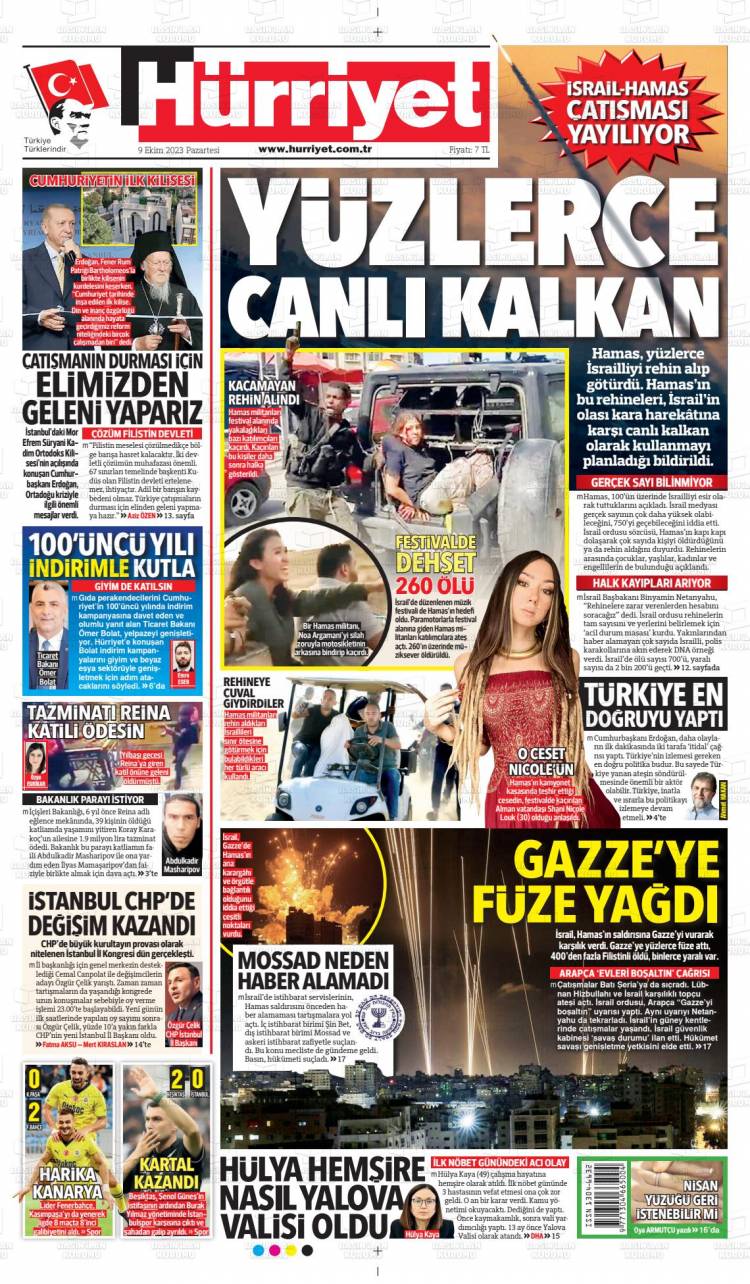 Günün Ulusal Gazete Manşetleri – 09 10 2023Ulusal Gazetelerin 1. sayfaları Haber Merkezi Yayınlanma: 09.10.2023 - 11:50 Son güncellenme: 28.01.2025 - 05:00 Hürriyet