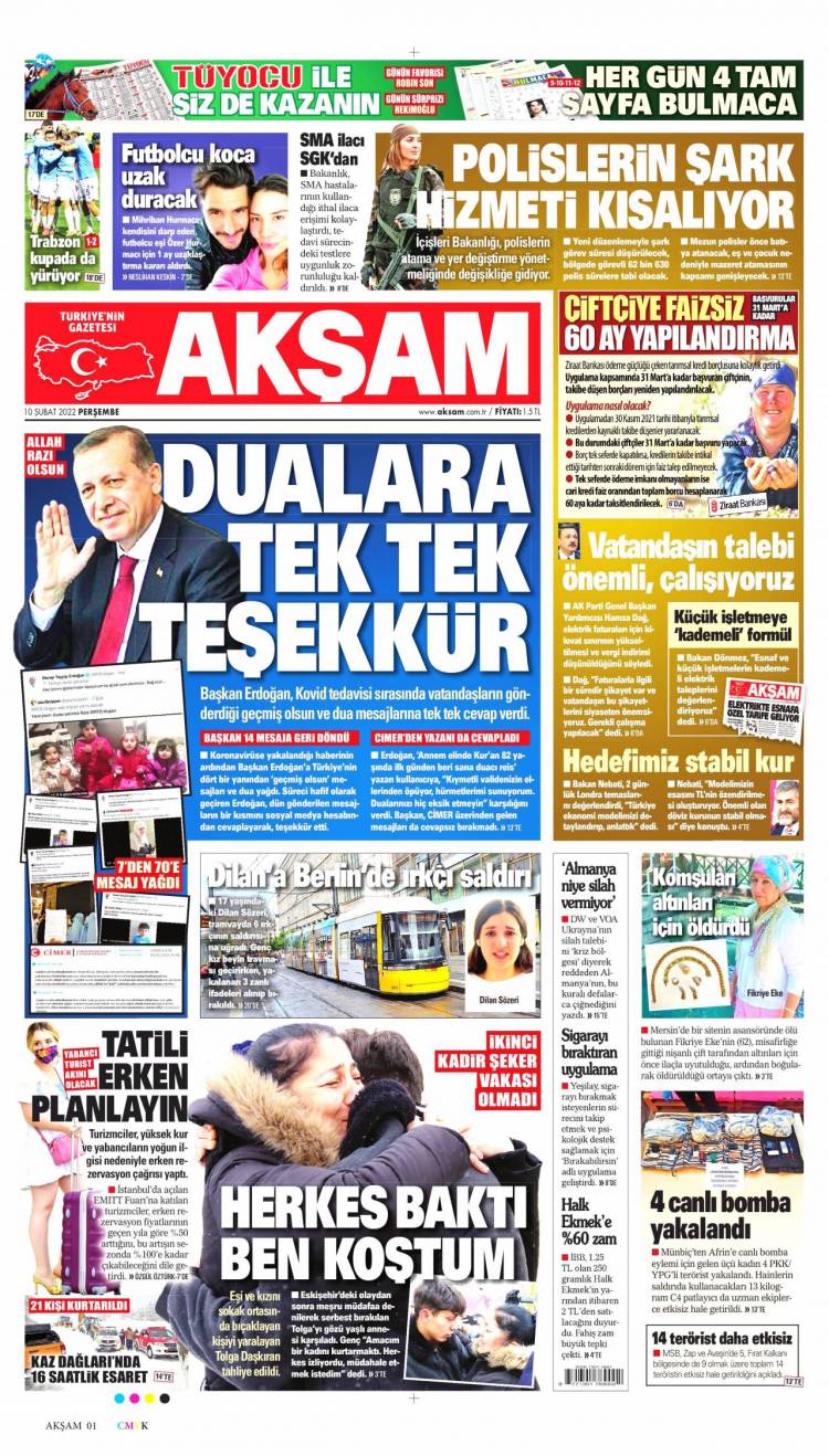 * Günün Ulusal Gazete Manşetleri – 10 02 2022Ulusal Gazetelerin 1. sayfaları Haber Merkezi Yayınlanma: 10.02.2022 - 11:50 Son güncellenme: 28.01.2025 - 13:10 Akşam