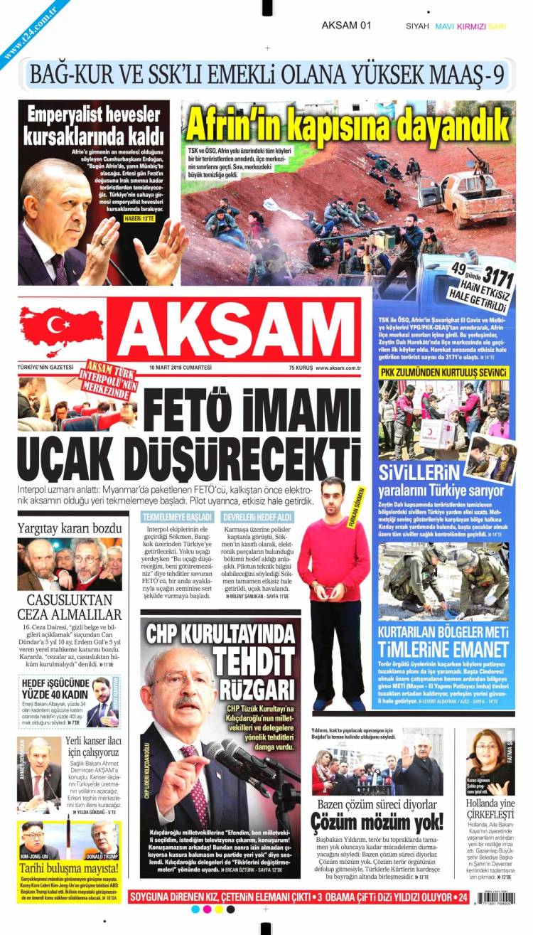 Günün Ulusal Gazete Manşetleri – 10 03 2018Ulusal Gazetelerin 1. sayfaları Haber Merkezi Yayınlanma: 10.03.2018 - 11:50 Son güncellenme: 29.01.2025 - 11:20 Akşam