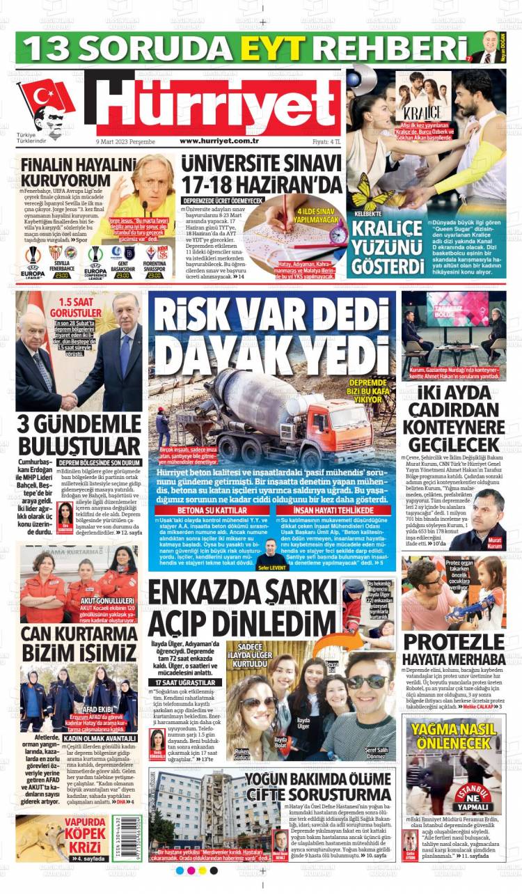 * Günün Ulusal Gazete Manşetleri – 10 03 2023Ulusal Gazetelerin 1. sayfaları Haber Merkezi Yayınlanma: 10.03.2023 - 11:50 Son güncellenme: 28.01.2025 - 07:51 Hürriyet