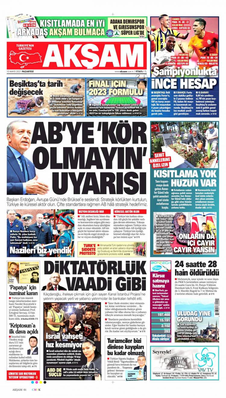 * Günün Ulusal Gazete Manşetleri – 10 05 2021Ulusal Gazetelerin 1. sayfaları Haber Merkezi Yayınlanma: 10.05.2021 - 11:50 Son güncellenme: 28.01.2025 - 17:02 Akşam