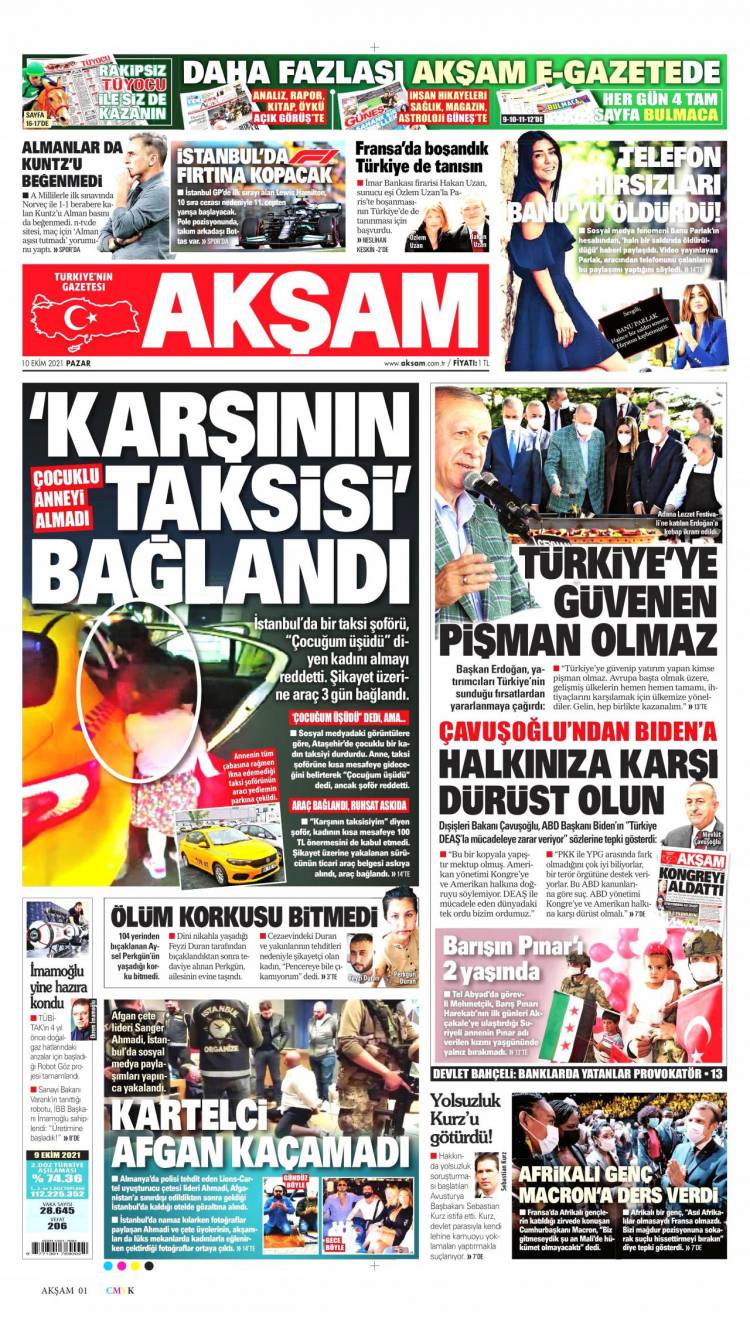 * Günün Ulusal Gazete Manşetleri – 10 10 2021Ulusal Gazetelerin 1. sayfaları Haber Merkezi Yayınlanma: 10.10.2021 - 11:50 Son güncellenme: 28.01.2025 - 14:54 Akşam