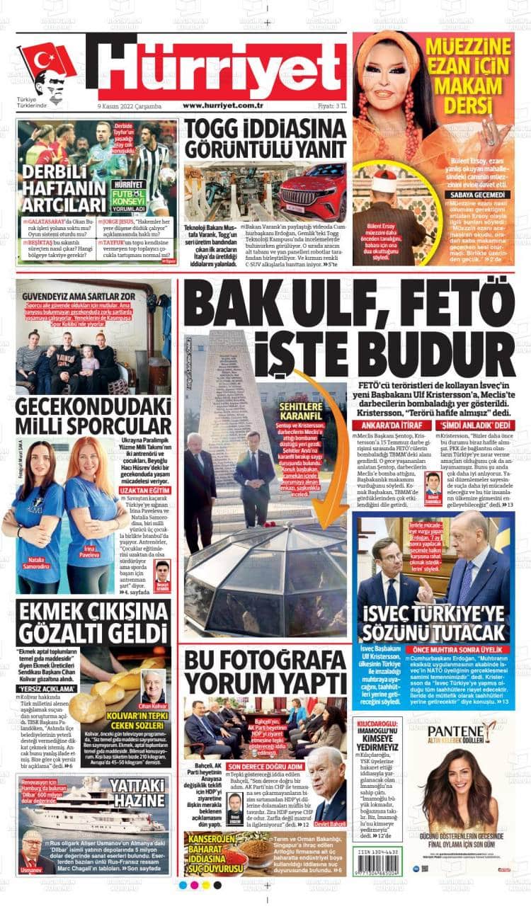* Günün Ulusal Gazete Manşetleri – 10 11 2022Ulusal Gazetelerin 1. sayfaları Haber Merkezi Yayınlanma: 10.11.2022 - 11:50 Son güncellenme: 28.01.2025 - 09:23 Hürriyet