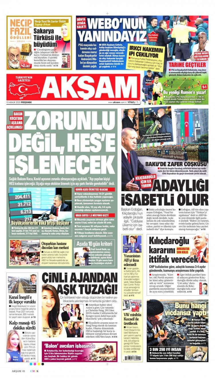 * Günün Ulusal Gazete Manşetleri – 10 12 2020Ulusal Gazetelerin 1. sayfaları Haber Merkezi Yayınlanma: 10.12.2020 - 11:50 Son güncellenme: 28.01.2025 - 19:10 Akşam