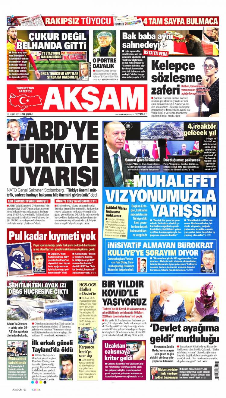 * Günün Ulusal Gazete Manşetleri – 11 03 2021Ulusal Gazetelerin 1. sayfaları Haber Merkezi Yayınlanma: 11.03.2021 - 11:50 Son güncellenme: 28.01.2025 - 17:53 Akşam