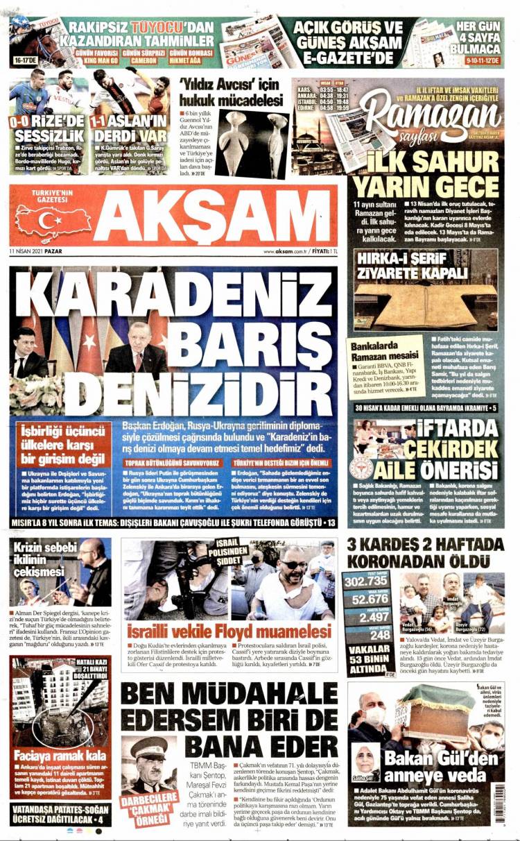 * Günün Ulusal Gazete Manşetleri – 11 04 2021Ulusal Gazetelerin 1. sayfaları Haber Merkezi Yayınlanma: 11.04.2021 - 11:50 Son güncellenme: 28.01.2025 - 17:26 Akşam