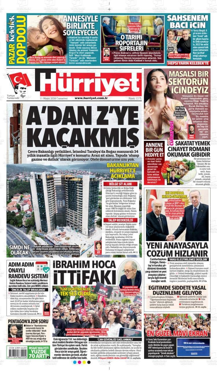 * Günün Ulusal Gazete Manşetleri – 11 05 2024Ulusal Gazetelerin 1. sayfaları Haber Merkezi Yayınlanma: 11.05.2024 - 11:50 Son güncellenme: 28.01.2025 - 02:11 Hürriyet