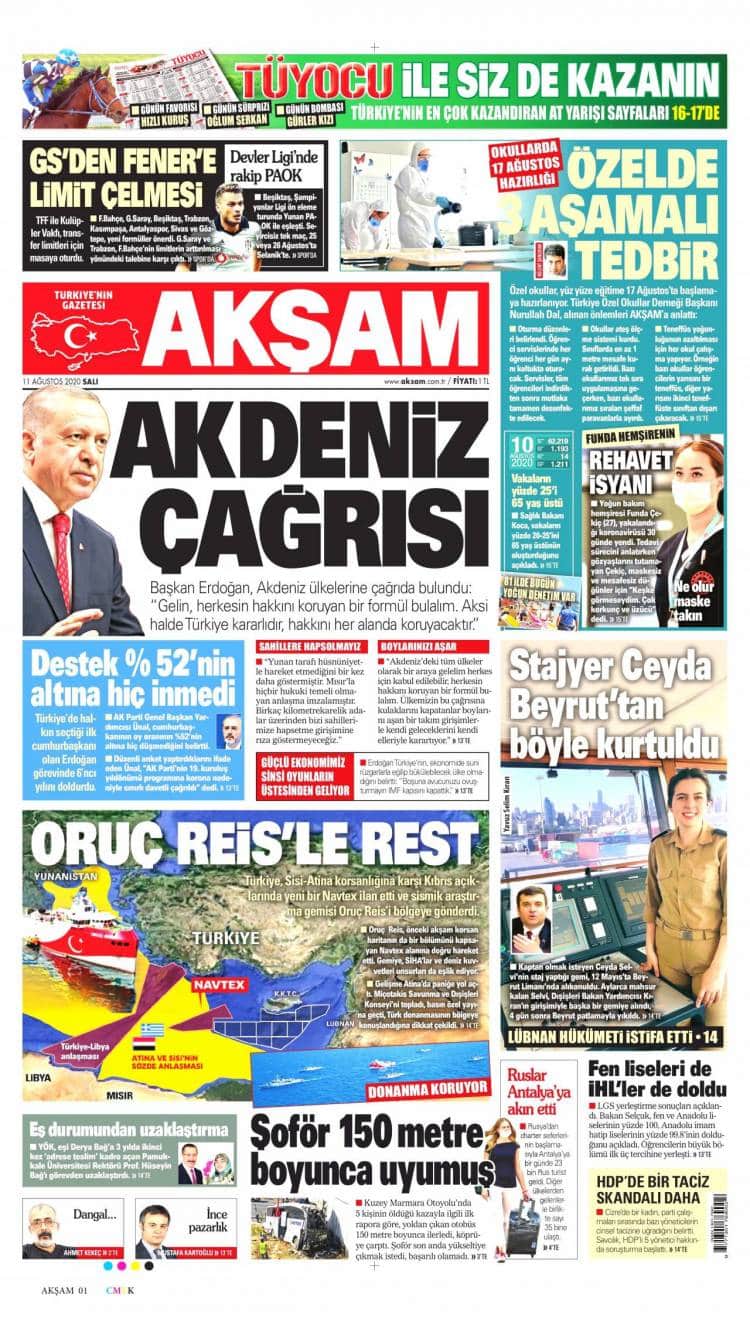 * Günün Ulusal Gazete Manşetleri – 11 08 2020Ulusal Gazetelerin 1. sayfaları Haber Merkezi Yayınlanma: 11.08.2020 - 11:50 Son güncellenme: 28.01.2025 - 20:56 Akşam