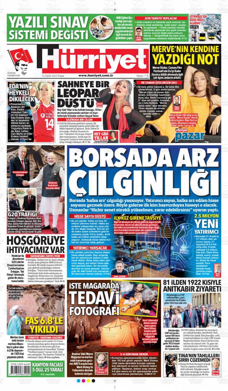 Günün Ulusal Gazete Manşetleri – 11 09 2023Ulusal Gazetelerin 1. sayfaları Haber Merkezi Yayınlanma: 11.09.2023 - 11:50 Son güncellenme: 28.01.2025 - 05:26 Hürriyet