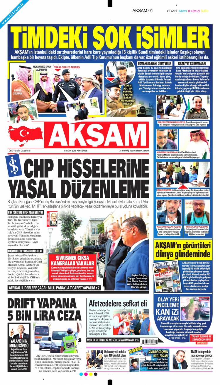 * Günün Ulusal Gazete Manşetleri – 11 10 2018Ulusal Gazetelerin 1. sayfaları Haber Merkezi Yayınlanma: 11.10.2018 - 11:50 Son güncellenme: 29.01.2025 - 06:45 Akşam