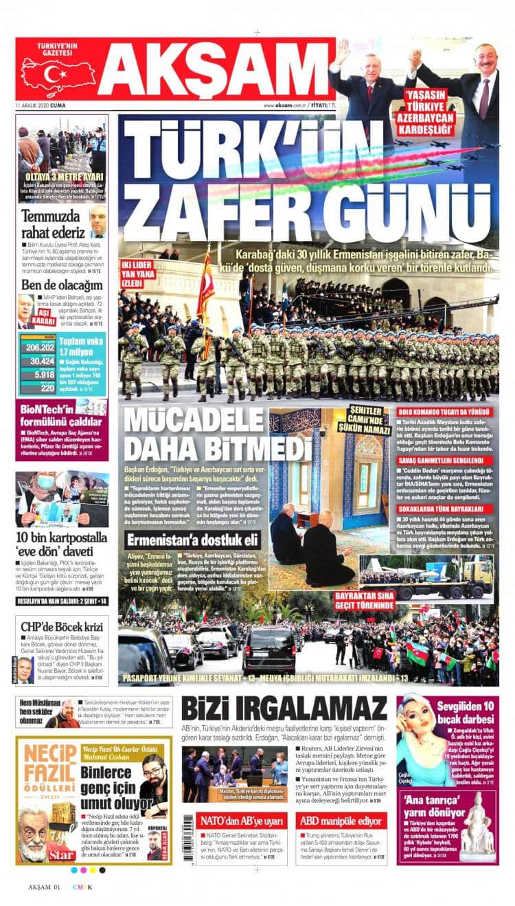 * Günün Ulusal Gazete Manşetleri – 11 12 2020Ulusal Gazetelerin 1. sayfaları Haber Merkezi Yayınlanma: 11.12.2020 - 11:50 Son güncellenme: 28.01.2025 - 19:09 Akşam