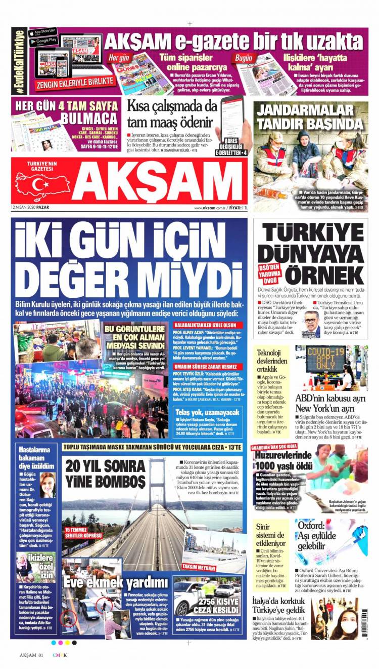 Günün Ulusal Gazete Manşetleri – 12 04 2020Ulusal Gazetelerin 1. sayfaları Haber Merkezi Yayınlanma: 12.04.2020 - 11:50 Son güncellenme: 28.01.2025 - 22:50 Akşam