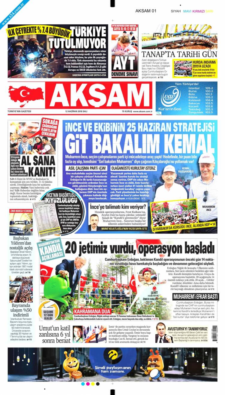 * Günün Ulusal Gazete Manşetleri – 12 06 2018Ulusal Gazetelerin 1. sayfaları Haber Merkezi Yayınlanma: 12.06.2018 - 11:50 Son güncellenme: 29.01.2025 - 09:13 Akşam