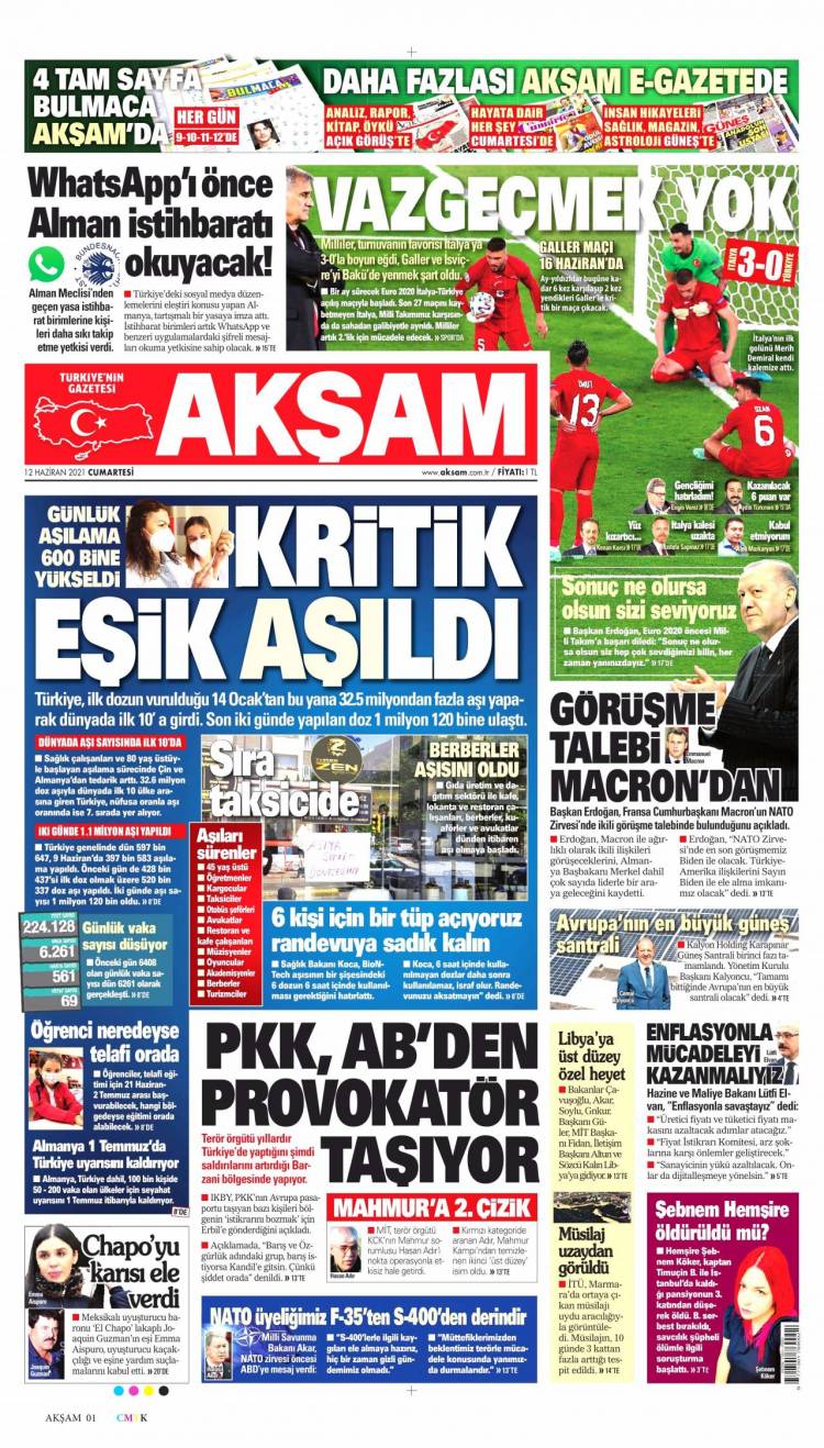 * Günün Ulusal Gazete Manşetleri – 12 06 2021Ulusal Gazetelerin 1. sayfaları Haber Merkezi Yayınlanma: 12.06.2021 - 11:50 Son güncellenme: 28.01.2025 - 16:35 Akşam