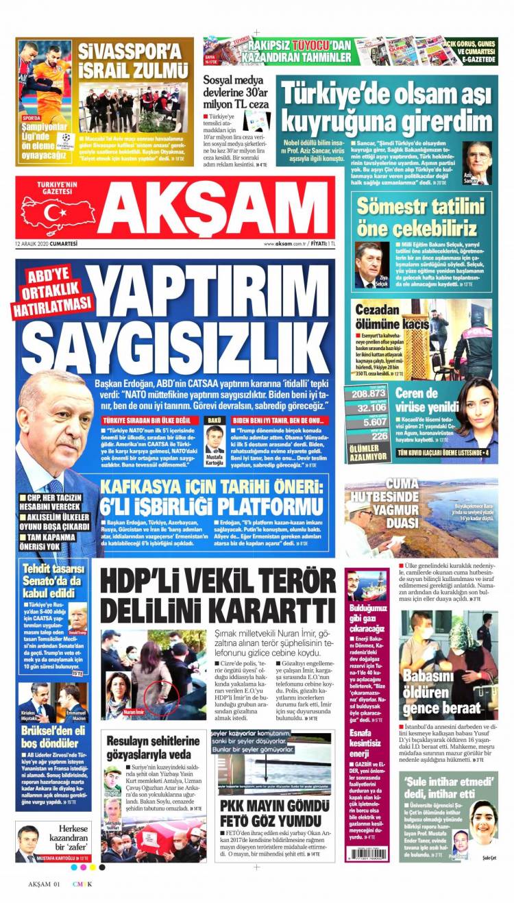 * Günün Ulusal Gazete Manşetleri – 12 12 2020Ulusal Gazetelerin 1. sayfaları Haber Merkezi Yayınlanma: 12.12.2020 - 11:50 Son güncellenme: 28.01.2025 - 19:09 Akşam