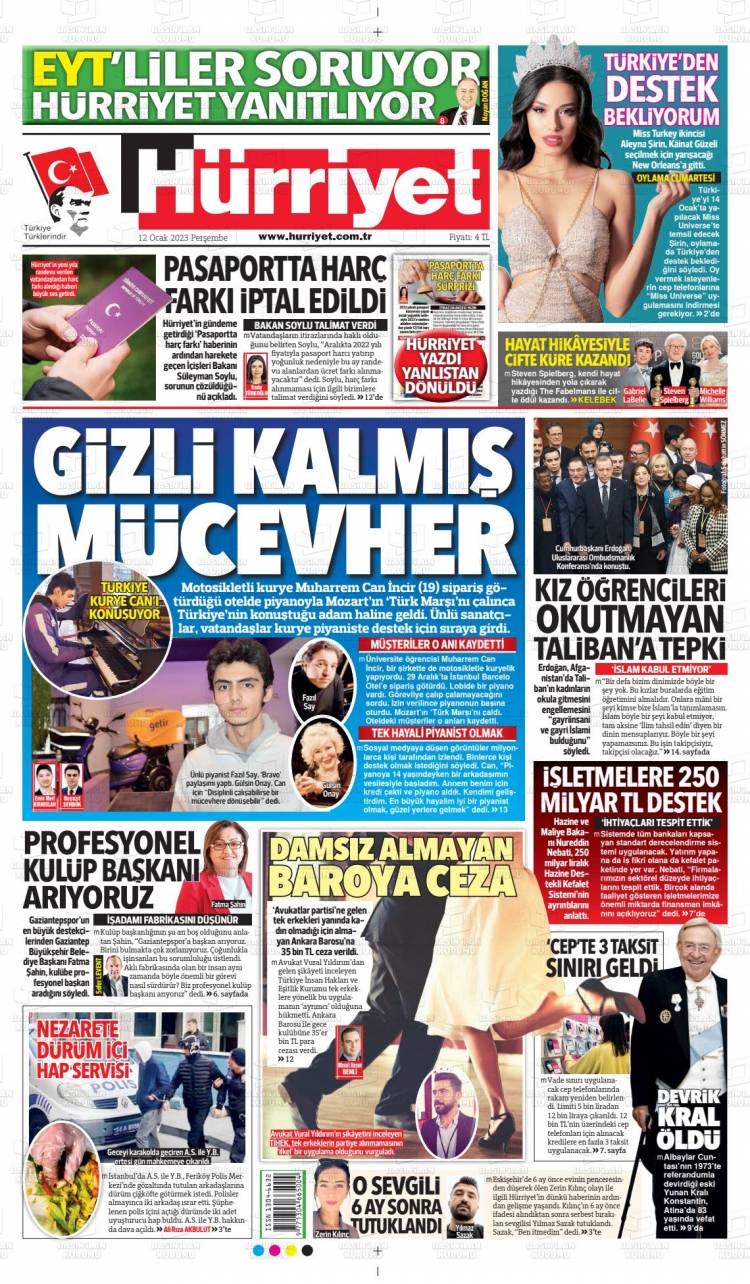 * Günün Ulusal Gazete Manşetleri – 13 01 2023Ulusal Gazetelerin 1. sayfaları Haber Merkezi Yayınlanma: 13.01.2023 - 11:50 Son güncellenme: 28.01.2025 - 08:35 Hürriyet