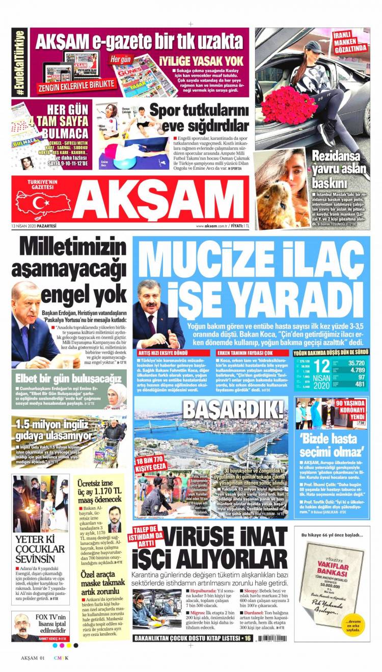 * Günün Ulusal Gazete Manşetleri – 13 04 2020Ulusal Gazetelerin 1. sayfaları Haber Merkezi Yayınlanma: 13.04.2020 - 11:50 Son güncellenme: 28.01.2025 - 22:49 Akşam