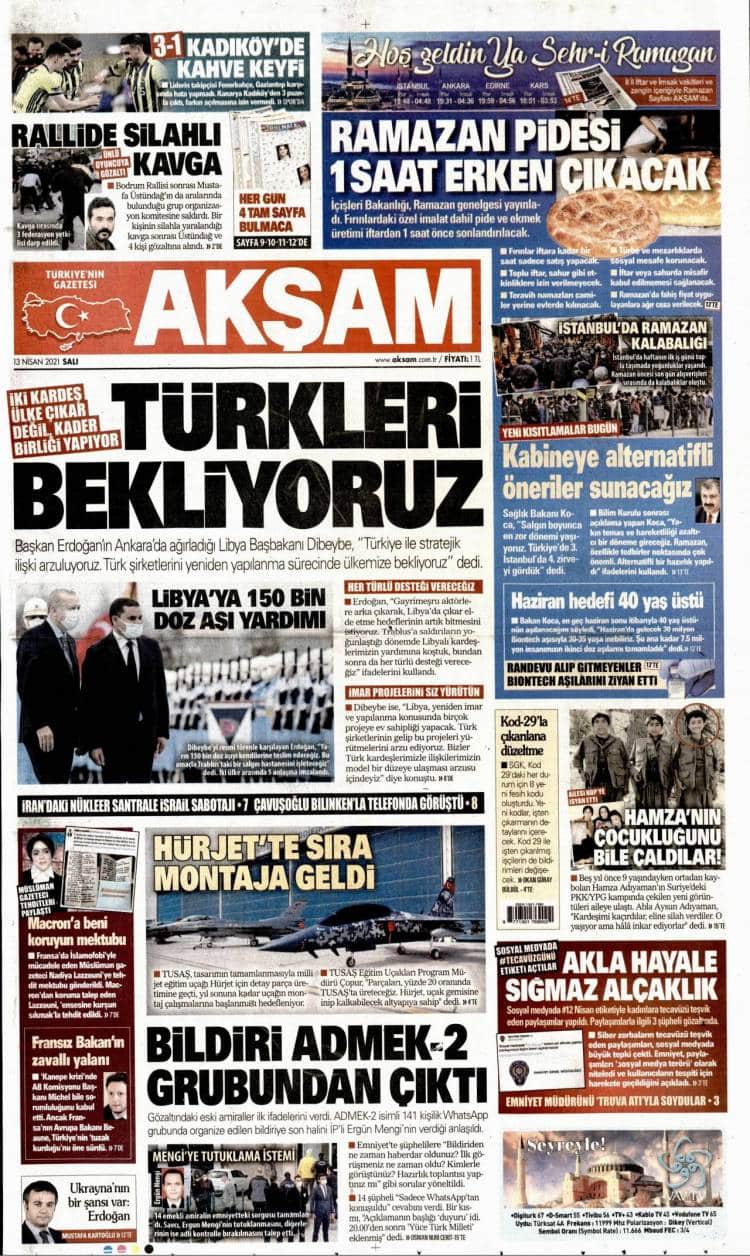 Günün Ulusal Gazete Manşetleri – 13 04 2021Ulusal Gazetelerin 1. sayfaları Haber Merkezi Yayınlanma: 13.04.2021 - 11:50 Son güncellenme: 28.01.2025 - 17:24 Akşam