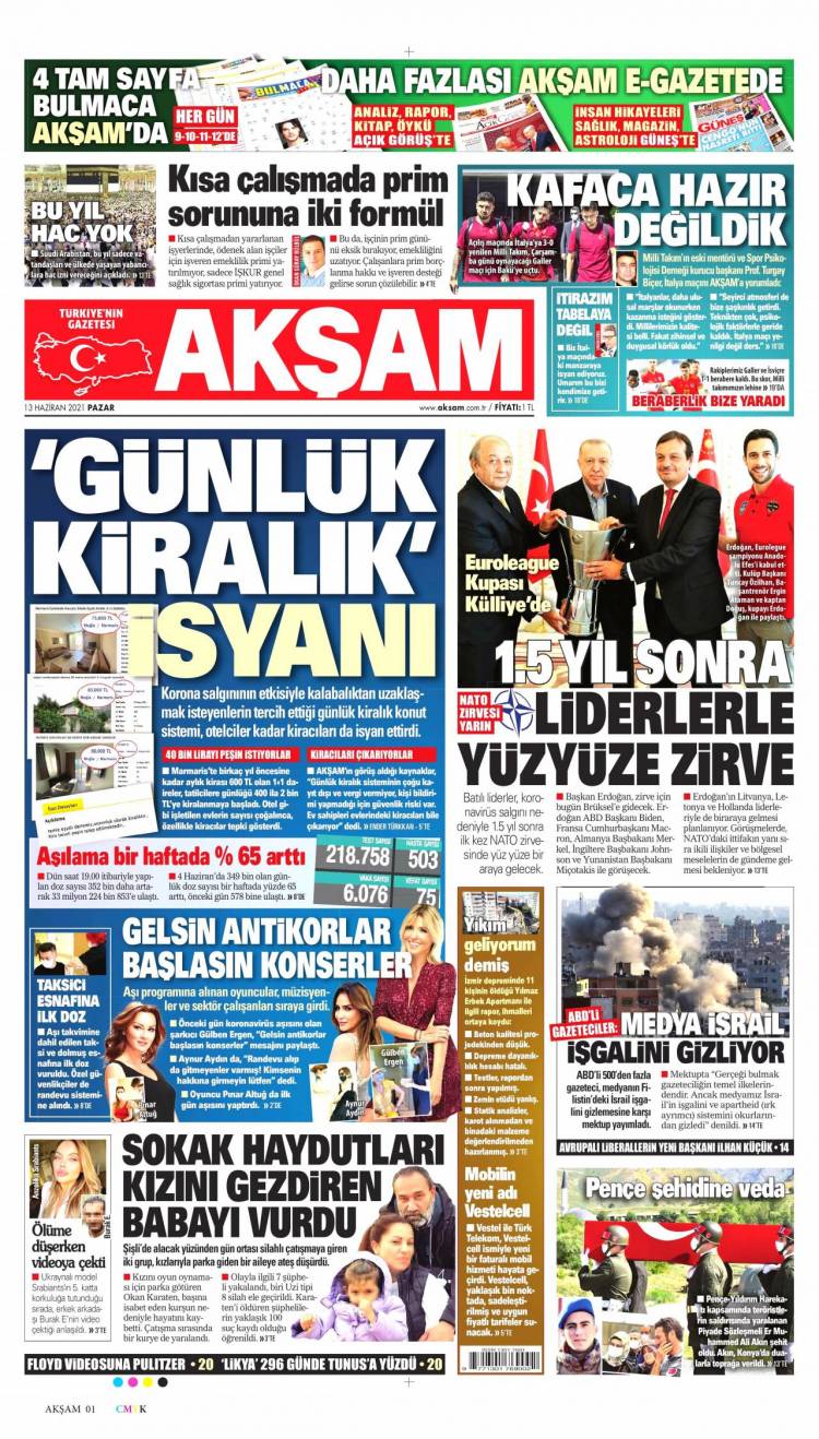 * Günün Ulusal Gazete Manşetleri – 13 06 2021Ulusal Gazetelerin 1. sayfaları Haber Merkezi Yayınlanma: 13.06.2021 - 11:50 Son güncellenme: 28.01.2025 - 16:34 Akşam