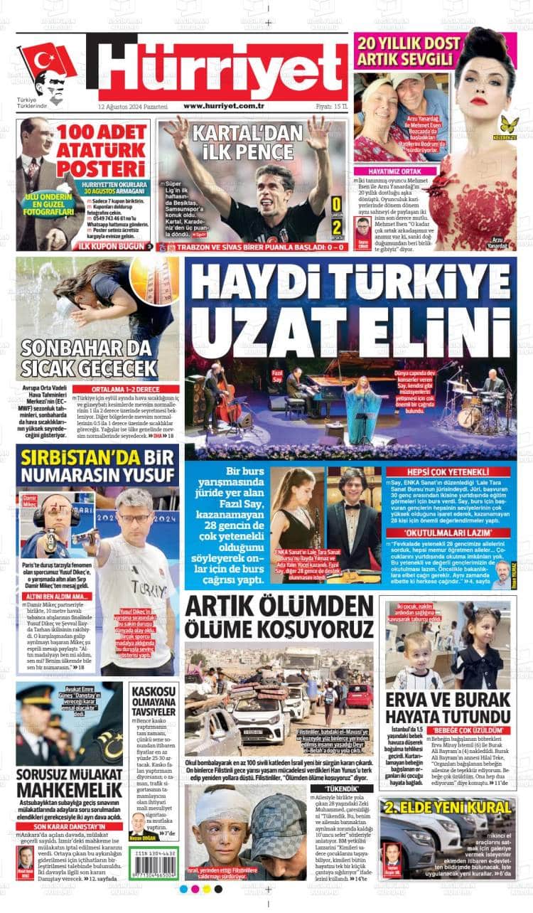 Günün Ulusal Gazete Manşetleri – 13 08 2024Ulusal Gazetelerin 1. sayfaları Haber Merkezi Yayınlanma: 13.08.2024 - 11:50 Son güncellenme: 28.01.2025 - 00:33 Hürriyet