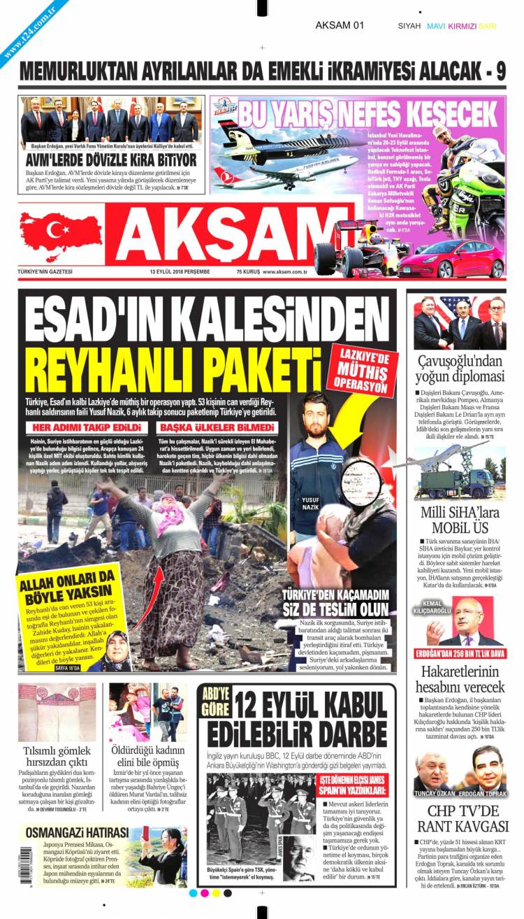 * Günün Ulusal Gazete Manşetleri – 13 09 2018Ulusal Gazetelerin 1. sayfaları Haber Merkezi Yayınlanma: 13.09.2018 - 11:50 Son güncellenme: 29.01.2025 - 07:18 Akşam