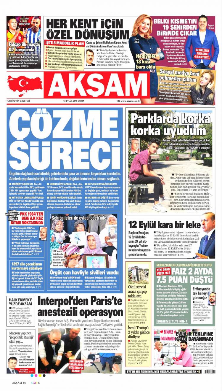 Günün Ulusal Gazete Manşetleri – 13 09 2019Ulusal Gazetelerin 1. sayfaları Haber Merkezi Yayınlanma: 13.09.2019 - 11:50 Son güncellenme: 29.01.2025 - 01:23 Akşam