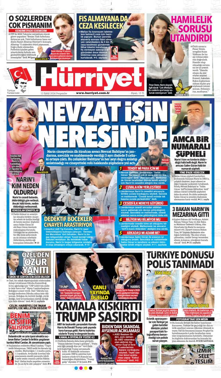 * Günün Ulusal Gazete Manşetleri – 13 09 2024Ulusal Gazetelerin 1. sayfaları Haber Merkezi Yayınlanma: 13.09.2024 - 11:50 Son güncellenme: 28.01.2025 - 00:08 Hürriyet