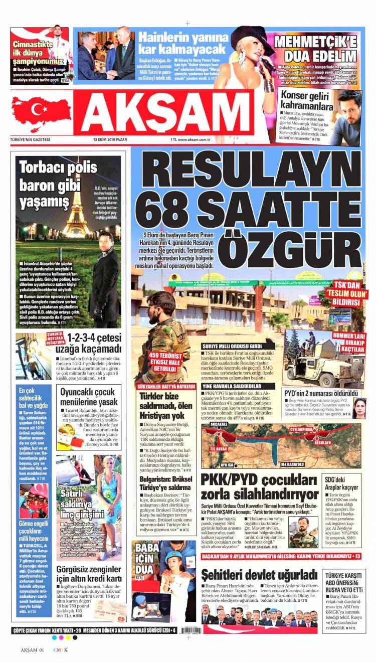* Günün Ulusal Gazete Manşetleri – 13 10 2019Ulusal Gazetelerin 1. sayfaları Haber Merkezi Yayınlanma: 13.10.2019 - 11:50 Son güncellenme: 29.01.2025 - 00:58 Akşam