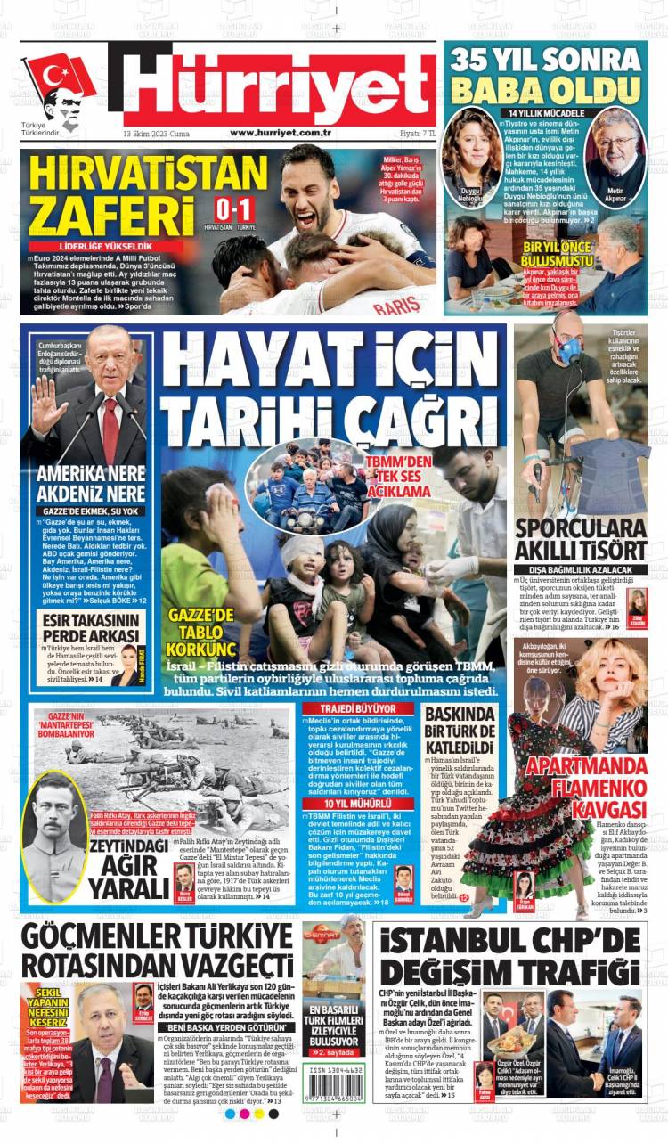 * Günün Ulusal Gazete Manşetleri – 13 10 2023Ulusal Gazetelerin 1. sayfaları Haber Merkezi Yayınlanma: 13.10.2023 - 11:50 Son güncellenme: 28.01.2025 - 04:57 Hürriyet