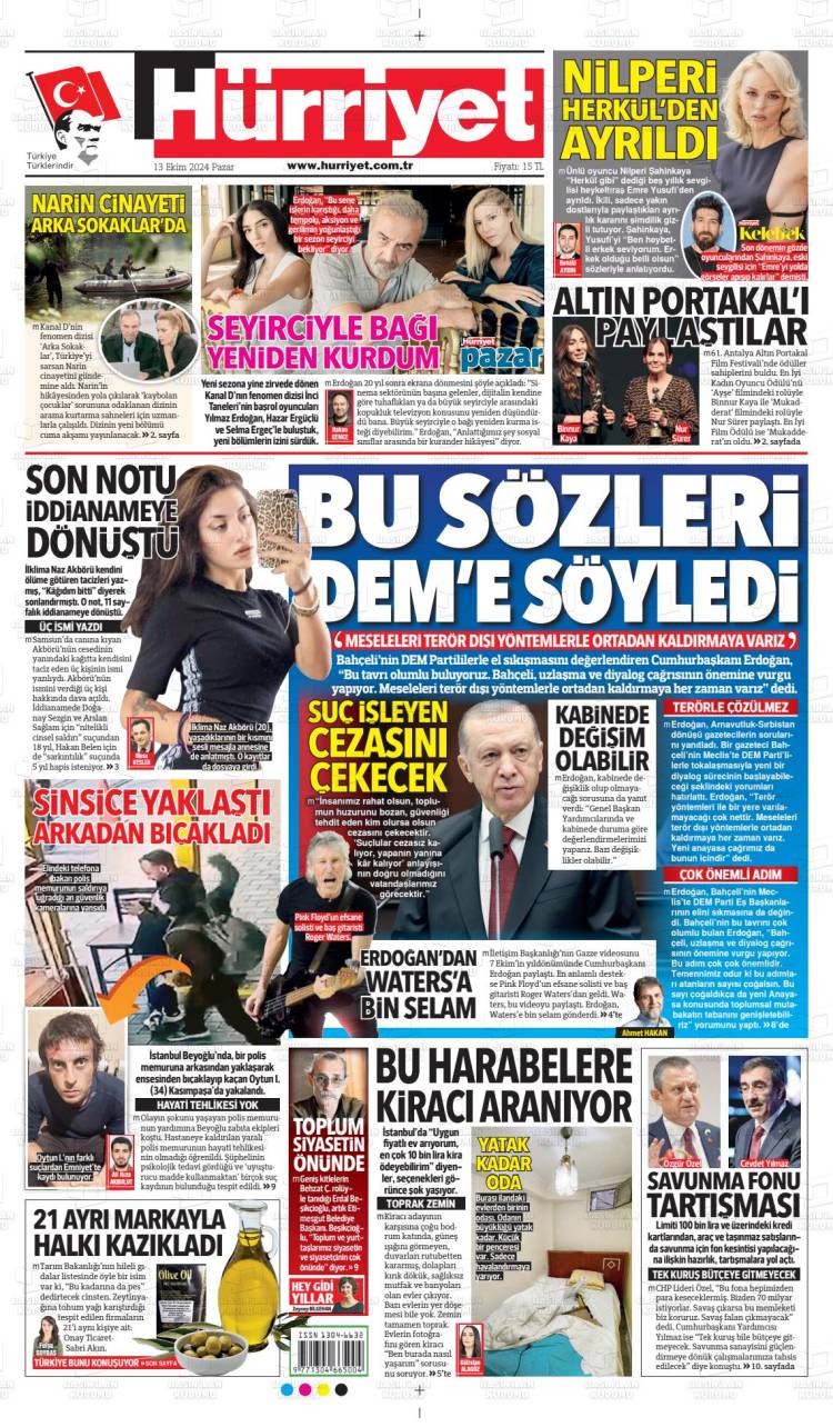 * Günün Ulusal Gazete Manşetleri – 13 10 2024Ulusal Gazetelerin 1. sayfaları Haber Merkezi Yayınlanma: 13.10.2024 - 11:50 Son güncellenme: 27.01.2025 - 23:43 Hürriyet