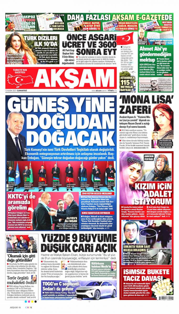 * Günün Ulusal Gazete Manşetleri – 13 11 2021Ulusal Gazetelerin 1. sayfaları Haber Merkezi Yayınlanma: 13.11.2021 - 11:50 Son güncellenme: 28.01.2025 - 14:25 Akşam