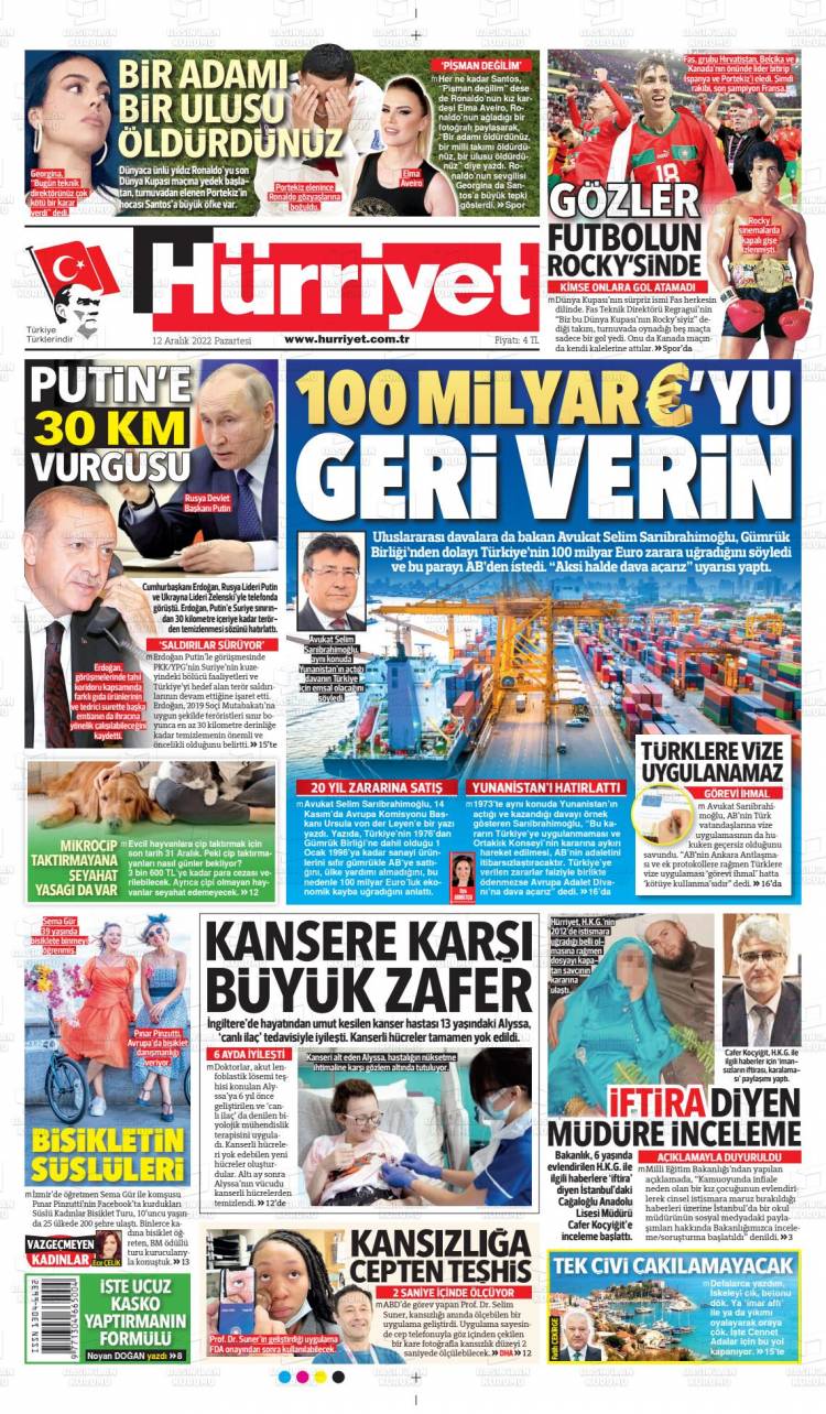 * Günün Ulusal Gazete Manşetleri – 13 12 2022Ulusal Gazetelerin 1. sayfaları Haber Merkezi Yayınlanma: 13.12.2022 - 11:50 Son güncellenme: 28.01.2025 - 08:57 Hürriyet