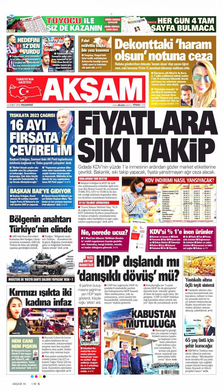 Günün Ulusal Gazete Manşetleri – 14 02 2022Ulusal Gazetelerin 1. sayfaları Haber Merkezi Yayınlanma: 14.02.2022 - 11:50 Son güncellenme: 28.01.2025 - 13:06 Akşam