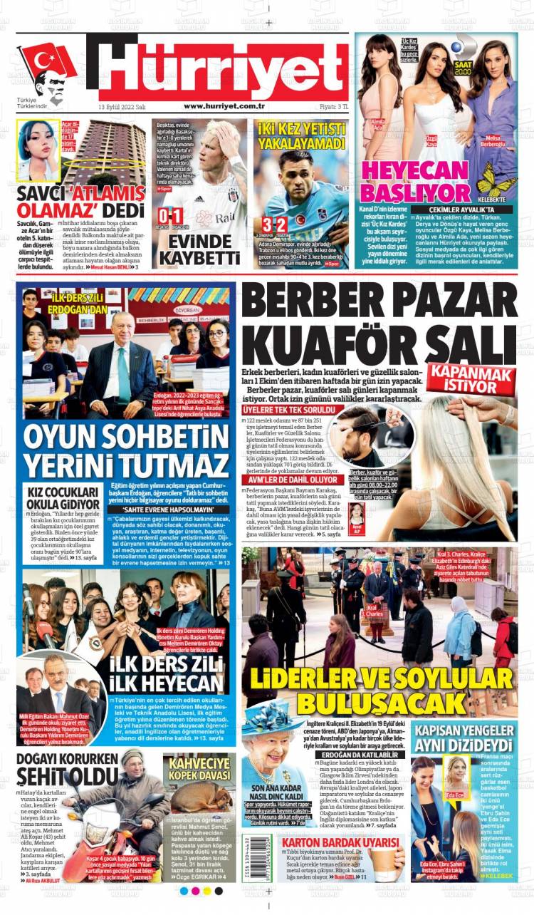 * Günün Ulusal Gazete Manşetleri – 14 09 2022Ulusal Gazetelerin 1. sayfaları Haber Merkezi Yayınlanma: 14.09.2022 - 11:50 Son güncellenme: 28.01.2025 - 10:08 Hürriyet