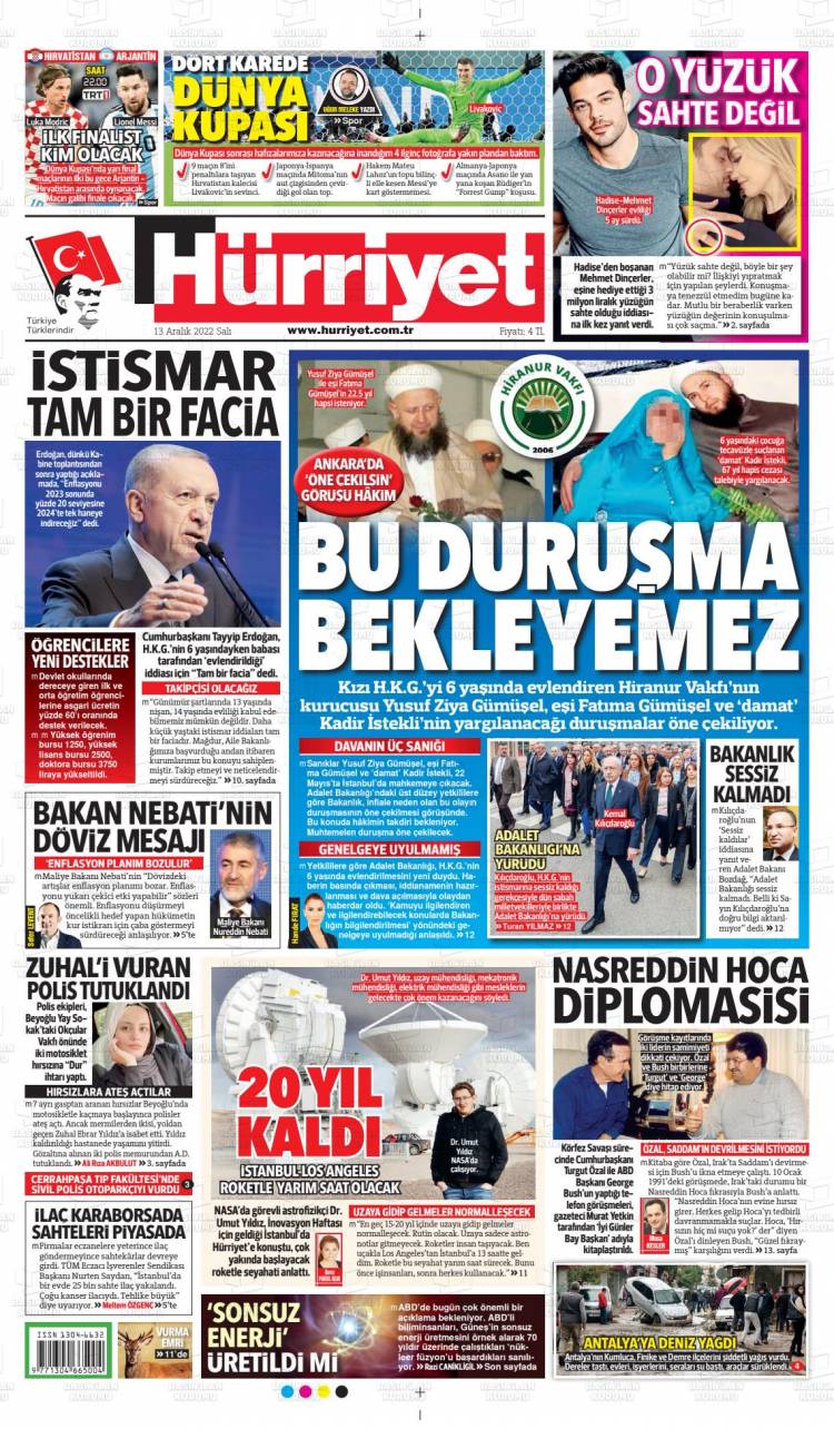 * Günün Ulusal Gazete Manşetleri – 14 12 2022Ulusal Gazetelerin 1. sayfaları Haber Merkezi Yayınlanma: 14.12.2022 - 11:50 Son güncellenme: 28.01.2025 - 08:56 Hürriyet