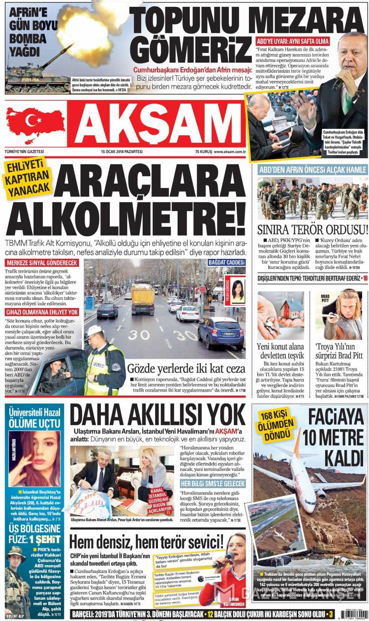 * Günün Ulusal Gazete Manşetleri – 15 01 2018Ulusal Gazetelerin 1. sayfaları Haber Merkezi Yayınlanma: 15.01.2018 - 11:50 Son güncellenme: 29.01.2025 - 13:12 Akşam