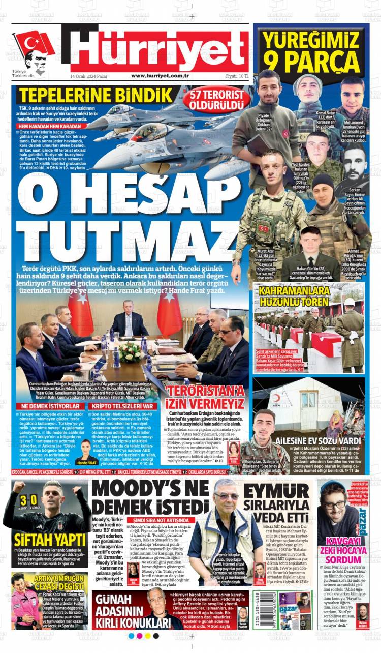 Günün Ulusal Gazete Manşetleri – 15 01 2024Ulusal Gazetelerin 1. sayfaları Haber Merkezi Yayınlanma: 15.01.2024 - 11:50 Son güncellenme: 28.01.2025 - 03:32 Hürriyet