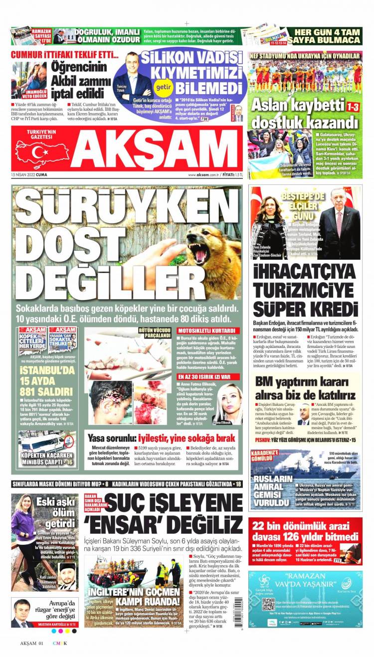 * Günün Ulusal Gazete Manşetleri – 15 04 2022Ulusal Gazetelerin 1. sayfaları Haber Merkezi Yayınlanma: 15.04.2022 - 11:50 Son güncellenme: 28.01.2025 - 12:15 Akşam