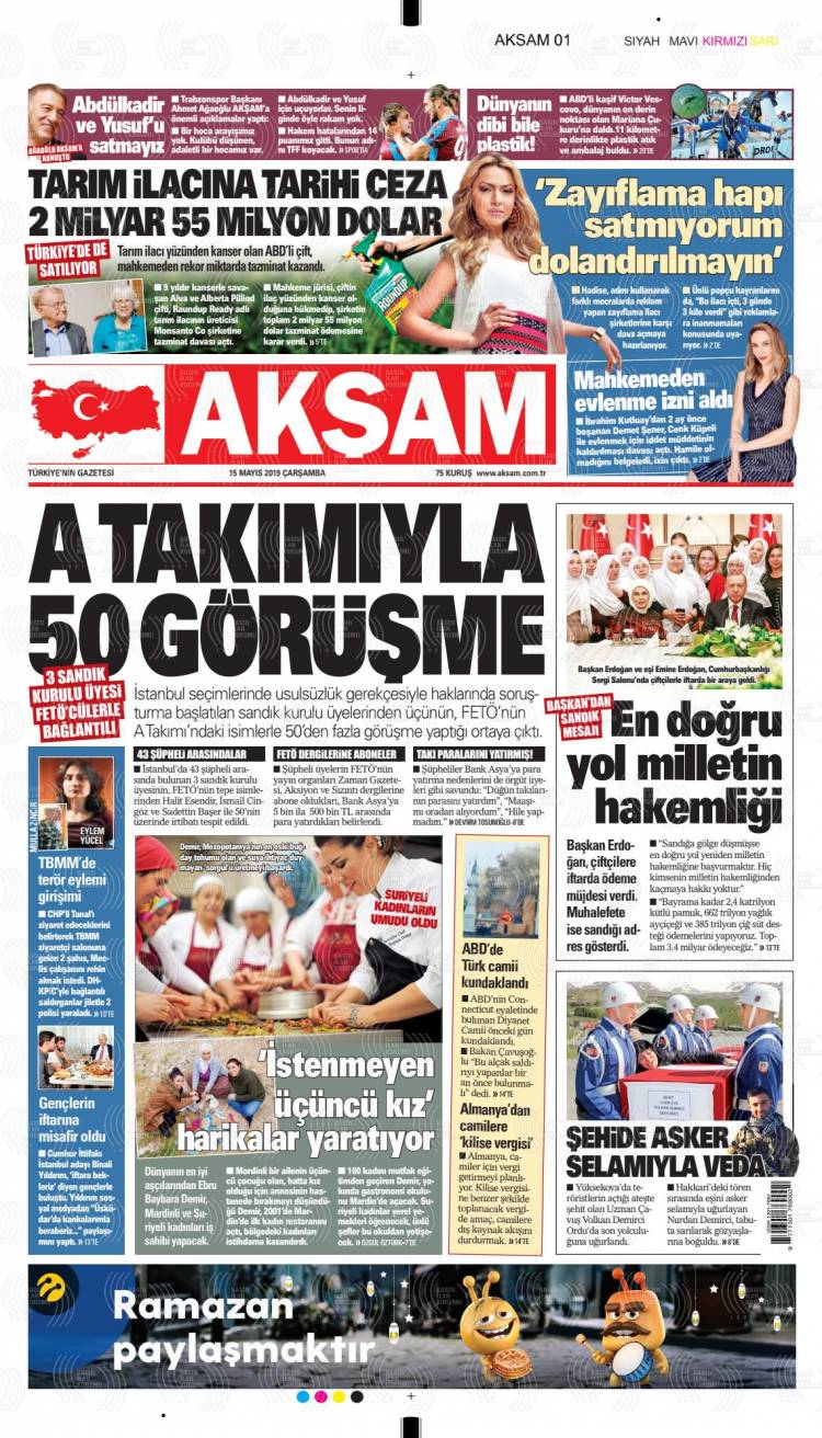 Günün Ulusal Gazete Manşetleri – 15 05 2019Ulusal Gazetelerin 1. sayfaları Haber Merkezi Yayınlanma: 15.05.2019 - 11:50 Son güncellenme: 29.01.2025 - 03:05 Akşam